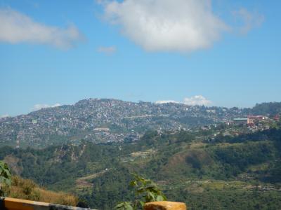 Der Van holt uns morgens im Hotel ab und dann wird es immer bergiger. Landschaftlich schön, die Hütten am Straßenrand wie überall ärmlich. Es gibt viele Holzwerkstätten am Wegesrand. Nach ca. 2 Stunden erreichen wir Baguio auf ca. 1500 m Höhe. Die ganze Stadt ist bergig. Die Gassen eng und mit jeder Menge Verkehr.
