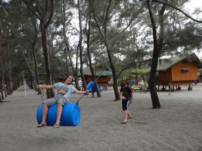 Am Strand ist hier mittlerweile einiges los da Wochenende. Hier wird in offenen Bambushütten kampiert, mit ganzer Familie und viel Essen, Grille qualmen, Kinder wuseln, Hunde bellen, Hähne krähen...