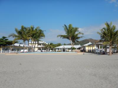 Wir sind direkt am Strand, ein kleiner Resort mit leuchtend gelben Häusern, zwei Pools in der Mitte, Restaurant, Liegen und sogar Touristen - in der bekannten Zusammensetzung Ami und Philippinin.