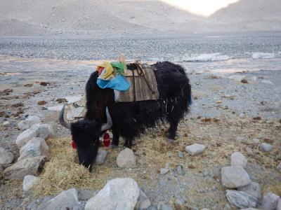 Da Vorsaison ist, haben wir sogar ein Zelt für uns alleine. Nachts wird es eisig kalt, dafür haben wir zwei dicke Decken. Die Trockenheit und die Höhe machen sich wieder mit Kopfschmerzen bemerkbar, aber höhenkrank werden wir zum Glück nicht. Es gibt ein einfaches Reisgericht - kein fliessenden Wasser, dafür Plumpsklo hinter der Hütte.