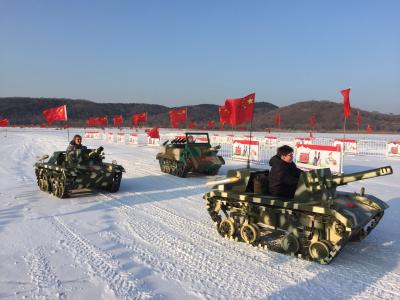 Und abschließend waren wir Panzerfahren auf dem See, eben typisch chinesische Winterfreuden.