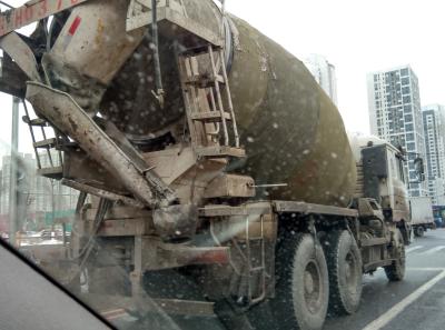 Betonmischer mit Winterjacke